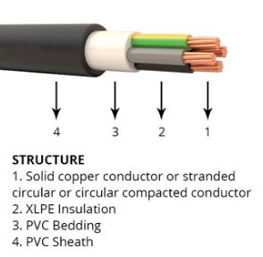 - 2X : به جنس عایق کابل اشاره میکند که عایق پلی اتیلن کراس لینک شده XLPE است.